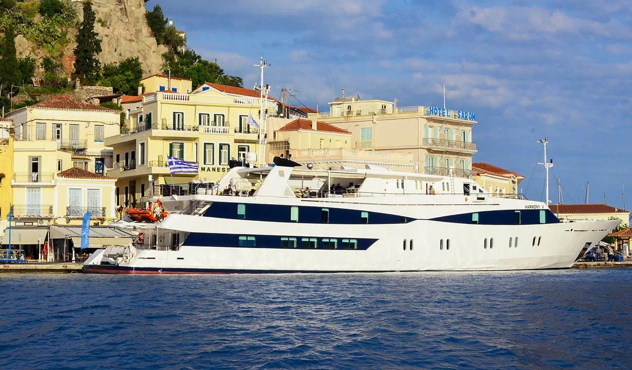 Le MY Harmony V est le récent de la compagnie grecque Variety Cruises conçue en 2003 et inauguré en 2009. Il est long de 55 mètres et 8 mètres de large pour une capacité d’accueil de 49 passagers et 17 membres d’équipage, logés dans 25 cabines et répartis sur trois ponts. Il vogue généralement en Afrique, sur les îles grecques et sur la Méditerranée.