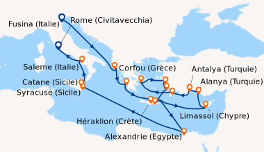 Si embarquement en Egypte, et si les hôtes ne sont pas en mesure de se procurer le visa à entrées multiples en ligne avant le départ, ils peuvent acquérir la première vignette de visa d'entrée directement à l'aéroport d'Hurghada dans les bureaux du gouvernement, en payant l'équivalent de USD 25,00. La deuxième vignette de visa d'entrée requise à la fin de la croisière, lorsque le navire retourne en Égypte, doit être achetée directement à bord au prix de 29 euros. Cette solution alternative n'est pas valable pour les nationalités nécessitant un visa pré-émis par une ambassade ou un consulat.