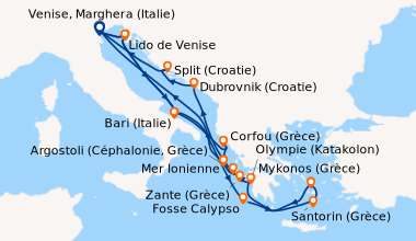 A la découverte des îles grecques en avril. Aucune place pour l’ennui, car les animateurs s’organisent pour divertir toutes les classes d’âges: cours de cuisine jeux, danse, aérobic, …. Avec une escales par jour, il y a la possibilité de s’inscrire à différentes excursions (payantes), ce n’est pas donné (à 5 ça chiffre vite), nous avons préféré faire des visites libres. Venise la romantique, nous attendait avec ses palais, églises, ponts, canaux et son joyau, la Basilique Saint Marc; En Italie, Bari cernés de remparts antiques, ressemble à une capitale historique baignée par la mer adriatique; En Grèce, Corfou, bordée par les plages de sables blancs, les aux turquoises de la mer ionienne; Santorin, (ma préférée), étonnante île volcanique au sable noir avec son point de vue culminant qui permet d’admirer les îles voisines; Athènes avec son Acropole et sa ville haute fortifiée; En Croatie, Dubrovnik, où chaque chemin mène vers un chef-d’œuvre d’architecture : églises, fontaines, palais et monastères cernés de remparts dont la visite est incontournable. Que de merveilleux souvenirs ! Mathide
