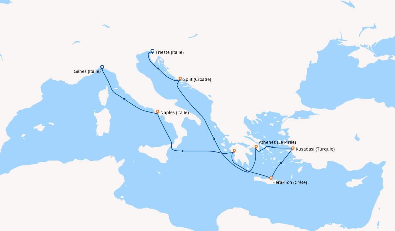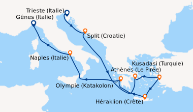 Croisière en avril’ à destination de la Méditerranée, embarquement à Marseille C’est notre première croisière avec ma femme et mes deux enfants. Avant de partir, j’ai lu des bonnes et moins bonnes critiques sur le navire, mais après notre croisière je peux affirmer que le bateau est superbe, les équipements excellents, les animations sympas, la restauration variée, le personnel chaleureux et amical. L’embarquement est rapide, sans faille. La chambre (avec balcon) est spacieuse, claire, luxueuse, avec de grands lits confortables. Nous avons pris le forfait boissons ‘tout compris’ : 480 € pour 4 personnes/ la semaine ; Il est très économique car il comprend tous les cocktails, spiritueux, vins et bières, les eaux, crèmes glacées, etc. Si vous ne choisissez pas cette option, il faut savoir que les prix sont un peu chers : cocktail 8€, pour une bouteille de bière 5,50€, pour une crème glacée 5 €. Nous avons choisi MSC croisieres parce que les enfants de moins de 12 ans voyagent gratuitement (sauf taxes portuaires bar etc.) Sans aucun frais cachés. Cela signifie, un prix abordable pour une famille de quatre personnes. Les enfants adore l’ambiance du navire, les liens d’amitiés noués avec les passagers de leur âge et les équipements : les piscines, les clubs, etc….. La croisière réunie de nombreuses familles avec enfants, des couples, des groupes, et de nombreuses nationalités dont la moyenne d’âge est assez jeune. Cette croisière sous le signe de la découverte, l’amitié, la joie de vivre, nous donne la certitude qu’il ne faut pas attendre trop longtemps pour y retourner.