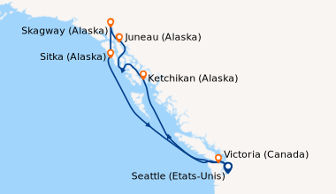 Nous avons embarqué ce mois-ci, mon agent m'a proposé un package vol+croisière depuis Paris alors on a tenté l'experience pour changer de la méditerranée.Et c’est surement le plus grand navire de croisière sur lequel nous ayons navigué. Les points positifs: de jolies cabines et une configuration de salle de bains assez astucieuse, cela dit les espaces de rangement trop petits, surtout quand on est 2 !.. un détail qui gache la vie à bord: l'ascenseur à l'attente interminable.. côté itinéraire, le escales sont bien choiseies, avec pas trop de journées en mer. Ketchikan, juneau et icy strait (port privé) rasseble tout ce qu'on aime dans le nord de l'amérique: de l'espace, des montagnes, de l'air pur et des gens vraiment sympas, à condition de parler anglais un minimum. voila pour mon avis !