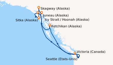 Nous avons embarqué ce mois-ci, mon agent m'a proposé un package vol+croisière depuis Paris alors on a tenté l'experience pour changer de la méditerranée.Et c’est surement le plus grand navire de croisière sur lequel nous ayons navigué. Les points positifs: de jolies cabines et une configuration de salle de bains assez astucieuse, cela dit les espaces de rangement trop petits, surtout quand on est 2 !.. un détail qui gache la vie à bord: l'ascenseur à l'attente interminable.. côté itinéraire, le escales sont bien choiseies, avec pas trop de journées en mer. Ketchikan, juneau et icy strait (port privé) rasseble tout ce qu'on aime dans le nord de l'amérique: de l'espace, des montagnes, de l'air pur et des gens vraiment sympas, à condition de parler anglais un minimum. voila pour mon avis !