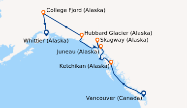 Le Coral Princess vous emmène à la découverte des merveilles de l'Alaska, avec ses ponts d'observation et ses excursions nature à couper le souffle.
