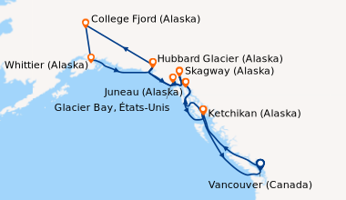 Le Coral Princess vous emmène à la découverte des merveilles de l'Alaska, avec ses ponts d'observation et ses excursions nature à couper le souffle.