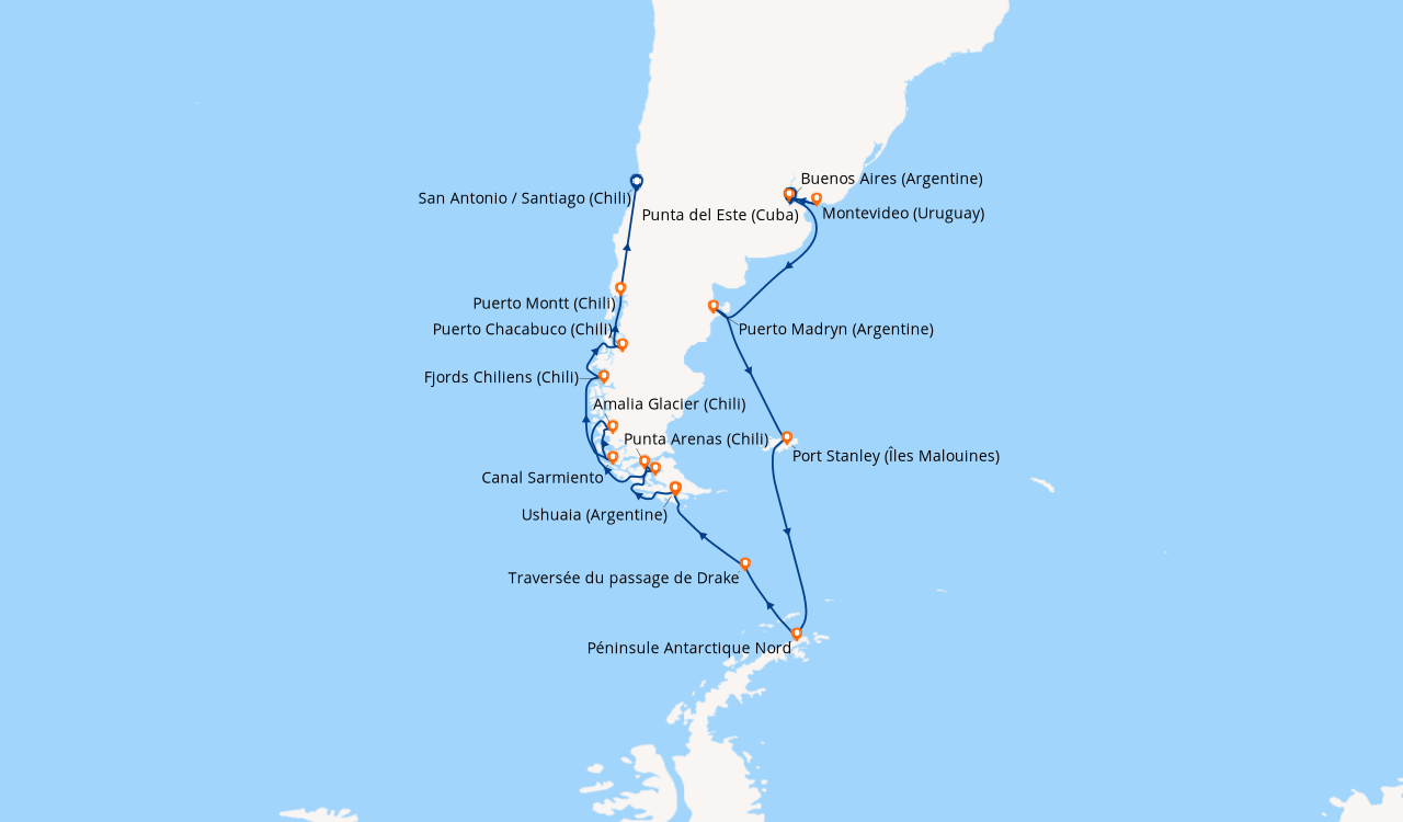 Picto arrivée Arrivée à San Antonio / Santiago (Chili)