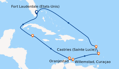 Croisière aux Caraïbes La qualité marquante de cette compagnie est son organisation sans faille. Il n’y a aucune perte de temps pour embarquer et débarquer. Le service de cabine est très efficace, ponctuel, discret : la cabine est toujours propre, les nécessaires de toilette renouvelés, sans jamais apercevoir le steward. La salle à manger principale fournit un service de qualité, une belle expérience culinaire, dans un cadre somptueux. Le buffet Oceanview, présente une cuisine un peu décevante pour un navire de la classe de l’Eclipse : Boulangerie le matin fade, peu de variété chaque jour. À bord, il y a de nombreux programmes pour se distraire : La bibliothèque, les conférences, les cours de danse de salon ou hip hop, la galerie d’art où on peut admirer quelques œuvres, des démonstrations de souffleur de verre, participer à un cours d’art. Pour les sportifs, le fitness, le croquet sur pelouse, la piscine, basket. Le personnel organise de nombreux jeux à la piscine. Pour ceux qui sont disposés à se délester de quelques pièces, le casino avec ses machines à sous est ouvert les jours de navigation. Certains programmes aident les enfants à créer des liens entre eux pour se distraire, les adolescents ont les jeux vidéo, des cours de danse etc…. Le bureau du service client est excellent, prompte à résoudre les problèmes au plus vite, toujours serviables. Je recommande cette compagnie et le navire.