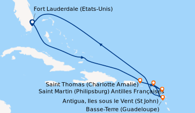 Croisière en Décembre à destination des Caraïbes orientales au départ de Fort Lauderdale. A la descente de la navette, j’aperçois le superbe navire qui nous servira de demeure pendant quelques jours. Dès l’arrivée à bord, je prends conscience du design soigné en empruntant un des ascenseurs vitrés qui me permet une vue d’ensemble des espaces publics. Nous investissons notre cabine avec balcon, plus spacieuse que sur les autres navires déjà expérimentés: dotée d’un grand lit, espace salon avec canapé, table, dressing, minibar, écran plat, salle de bains, balcon avec table, deux chaises. Nous décidons de trouver un lieu pour nous restaurer : L’ambiance décontractée du Self-service l’Oceanview convient immédiatement à nos estomacs affamés : la diversité des plats est prompte à ébranler les esprits les plus réfractaires aux affres de la gourmandise. Au diable le régime, profitons-en ! Le pont principal arbore deux bassins et quatre jacuzzis, autour desquels sont installés de nombreux transats ; une piste de jogging investie par les lève tôt 'sportifs', aux heures où les accros du bronzage dorment encore ; le Mast Bar et le Mast Grill, bienvenus pour se désaltérer aux heures chaudes de la journée. Sur la poupe, le Sunset Bar; sur un large espace, le ’Lawn Club’ petit oasis de pelouse naturelle, équipé d’un mobilier confortable parfait pour la sieste, étonne : l’ambiance est agréable, la véranda permet de profiter du panorama à l’abri du vent, les plats sont divins, notamment les viandes, salades, les fèves au lard, la crème de maïs, les Cookie aux pépites de chocolat etc…. ; le club Factory dispose de nombreux jeux, avec des animateur pour occuper les enfants pendant que les parents profitent d’un peu de temps libre. L’immense salle à manger principale Grand Cuvée Dining Room, répartie sur deux niveaux est le témoin favori de nos dîners : une capacité d’accueil de plus de 1200 personnes, une décoration moderne, sophistiquée, lumineuse grâce aux nombreux éclairages, un service étoilé, une cuisine variée de bonne facture, des convives sympathiques, car nous avons choisie une table de six afin de nouer des liens pendant notre séjour. Avant de profiter du spectacle du Théâtre, type cabaret, qui présente, chants, jonglage, acrobatie, magie, rien de tel que le Sky Observation Loung, à l’avant du navire, un cocktail à la main, bercés par la musique ambiante, protégés par les baies vitrées qui offrent une vue dominante sur la mer. La journée s’achève régulièrement dans l’ambiance électrique de la discothèque ‘ Quasar’, très populaire. Celebrity offre une belle parenthèse de détente et de découverte. Nous ferons de nouveau confiance à ces professionnels du loisir pour d’autres vacances.
