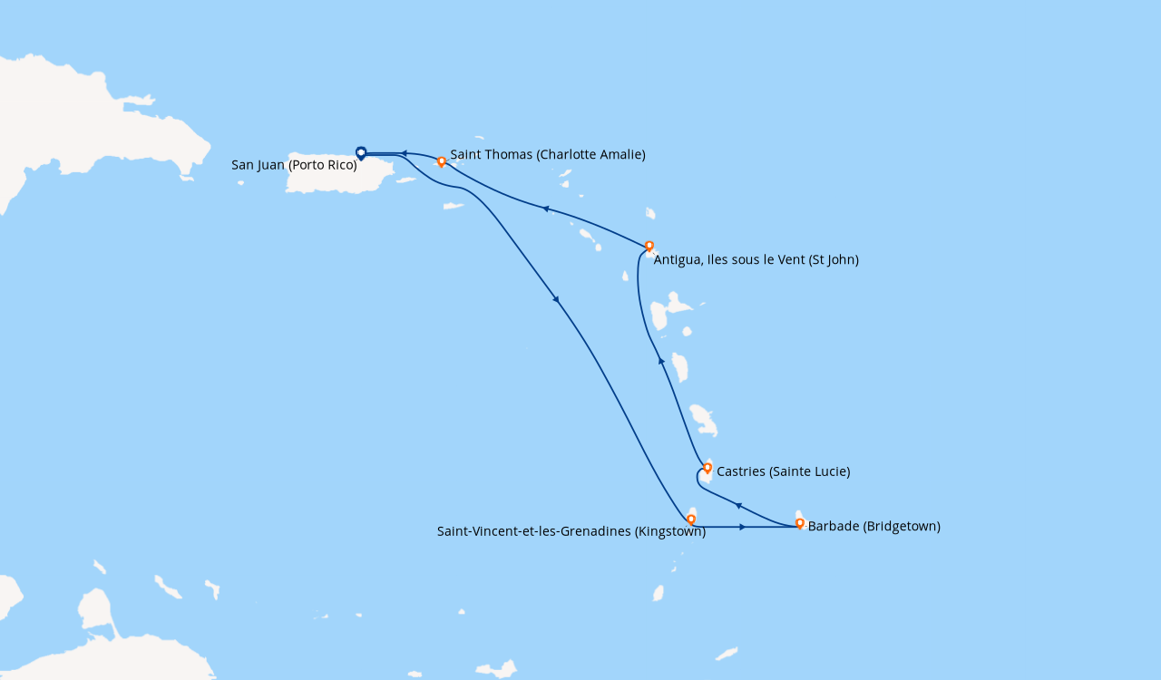 Croisière au départ de San Juan à destination des Caraïbes. Même si une croisière en Décembre au départ de San Juan est incertaine au niveau de la météo, nous avons eu de la chance avec le temps. Nous réservons toujours nos excursions, cette fois encore, aucun problème. C’est la septième fois que nous naviguons avec Summit, autant dire depuis le début, car nous aimons ce navire, même s’il montre des signes de vétusté, notamment la plomberie défectueuse qui créer une odeur omniprésente. Pour le reste le navire est parfaitement entretenu. Au restaurant principal, Le personnel est plein de bonne volonté, mais mal formé au service, pour exemple, des couverts incomplets, voir introuvables, les places attribuées par erreur, à presque tous les repas, des choses qui peuvent irriter. Nous mangeons donc dans les restaurants à thèmes chaque soir : le restaurant Blu offre de belles prestations cuisine, service; le Qsine est décoré avec soin, les plats sont présentés de façon originale, surprenante parfois, le personnel est professionnel, il est recommander sans modération ; le Bistro On Five a des crêpes élaborée à la demande, on peut les regarder cuisiner, le choix est varié, nous apprécions la soupe servie dans une boule de pain. Nous avons hâte de naviguer de nouveau avec celebrity Summit.
