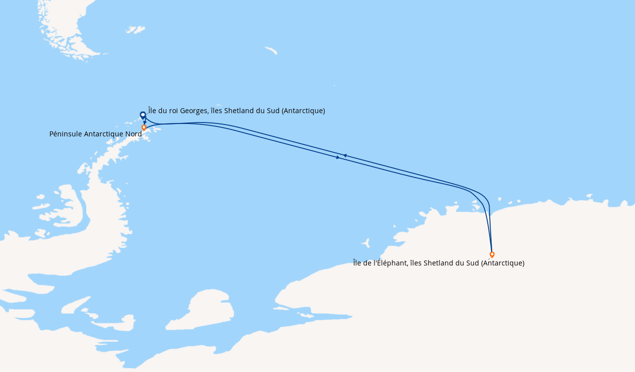 Picto arrivée Arrivée à Île du roi Georges, îles Shetland du Sud (Antarctique)
