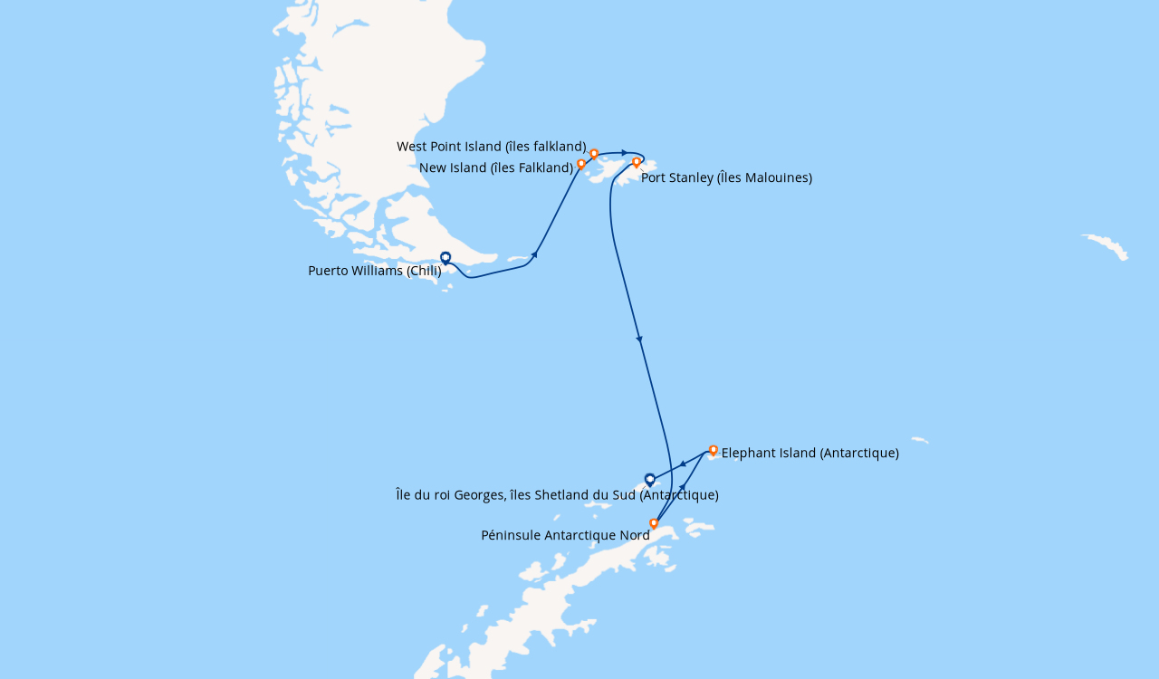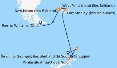 Picto arrivée Arrivée à Île du roi Georges, îles Shetland du Sud (Antarctique)