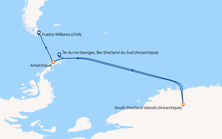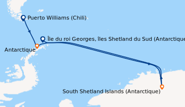 Picto arrivée Arrivée à Île du roi Georges, îles Shetland du Sud (Antarctique)