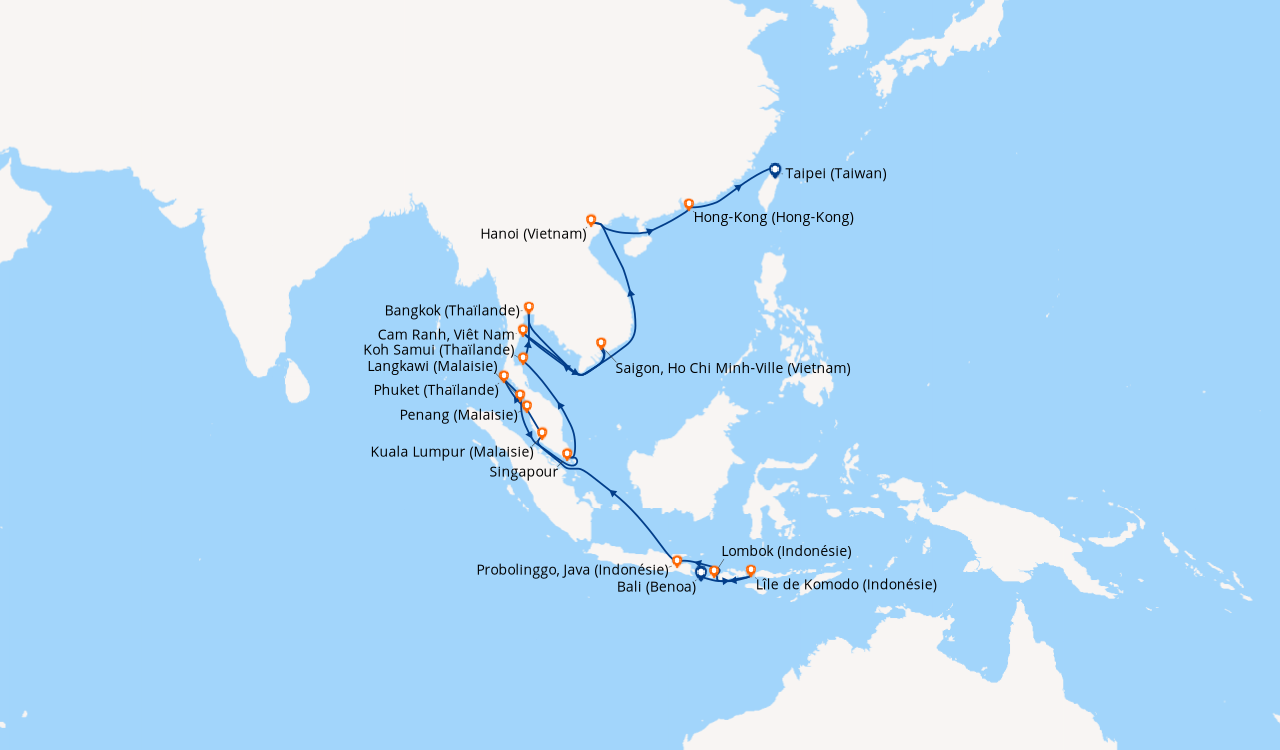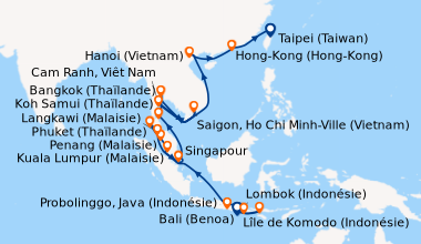 Pour les escales au Vietnam, en Chine et en Indonésie, un visa de transit, dont s'occupent en général les compagnies de croisière, est obligatoire et sera facturé dans le cadre de vos dépenses à bord.