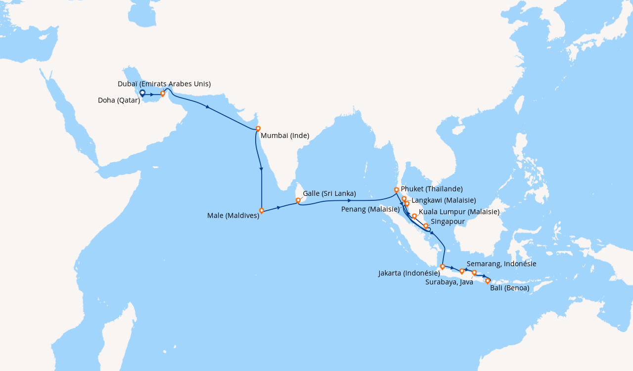 Pour les escales au Vietnam, en Chine et en Indonésie, un visa de transit, dont s'occupent en général les compagnies de croisière, est obligatoire et sera facturé dans le cadre de vos dépenses à bord.