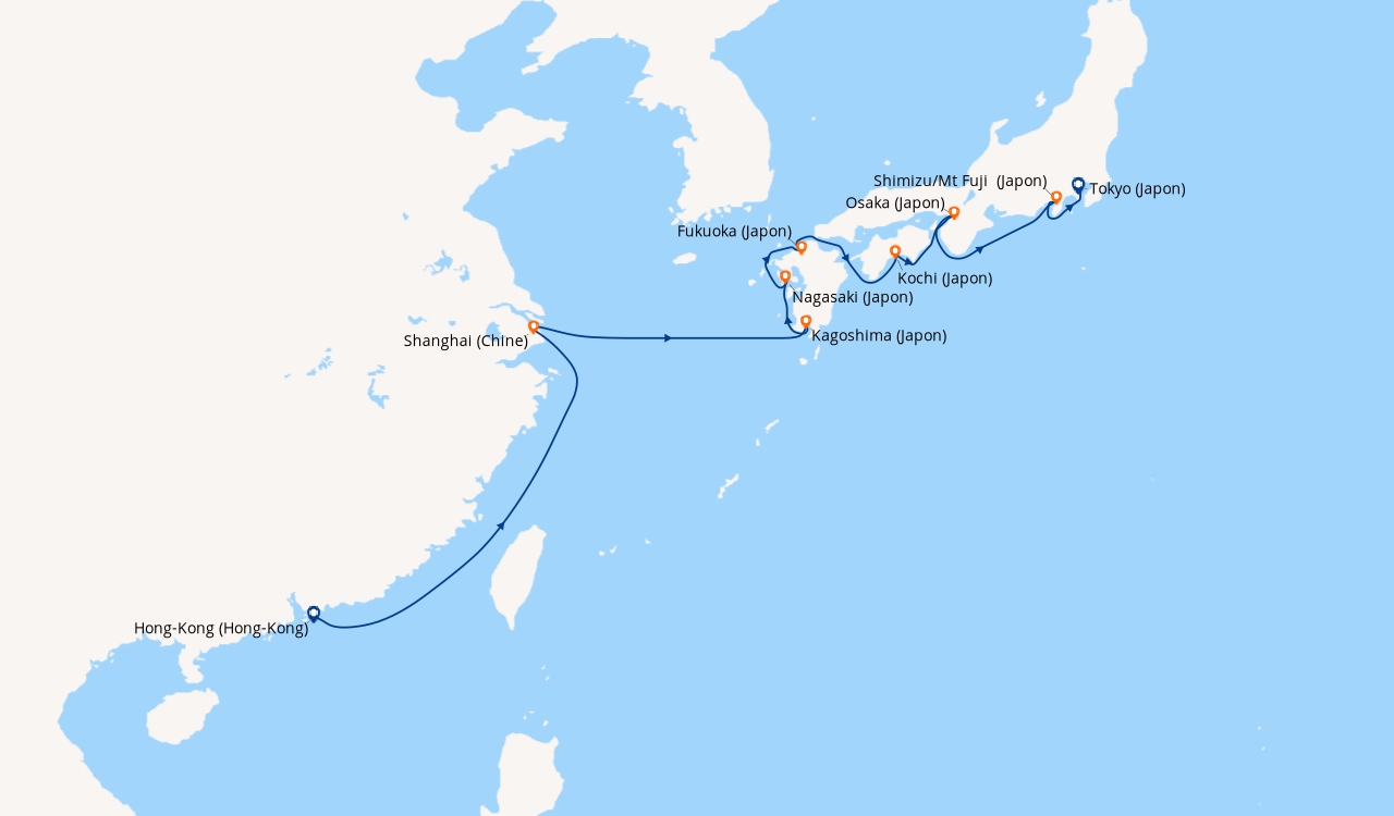 Une taxe locale japonaise (env. 1 000 ¥/passager) peut être appliquée pour les croisières faisant escale au Japon. Elle peut être facturée avant départ ou prélevée à bord selon la compagnie.