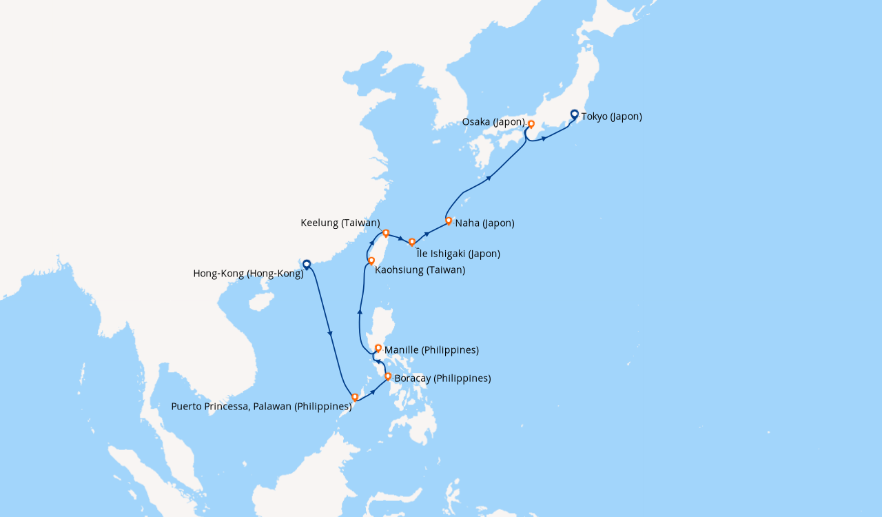 Une taxe locale japonaise (env. 1 000 ¥/passager) peut être appliquée pour les croisières faisant escale au Japon. Elle peut être facturée avant départ ou prélevée à bord selon la compagnie.