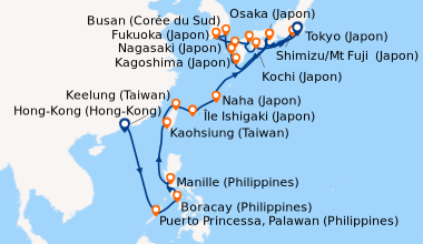Une taxe locale japonaise (env. 1 000 ¥/passager) peut être appliquée pour les croisières faisant escale au Japon. Elle peut être facturée avant départ ou prélevée à bord selon la compagnie.