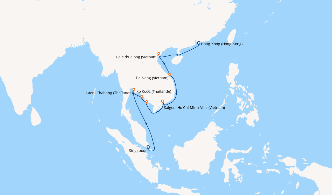 Pour les escales au Vietnam, en Chine et en Indonésie, un visa de transit, dont s'occupent en général les compagnies de croisière, est obligatoire et sera facturé dans le cadre de vos dépenses à bord.
