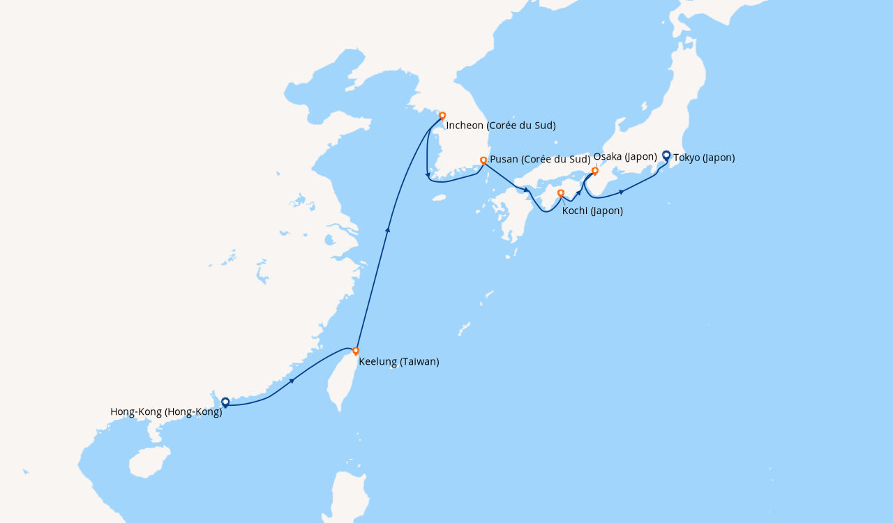 Une taxe locale japonaise (env. 1 000 ¥/passager) peut être appliquée pour les croisières faisant escale au Japon. Elle peut être facturée avant départ ou prélevée à bord selon la compagnie.