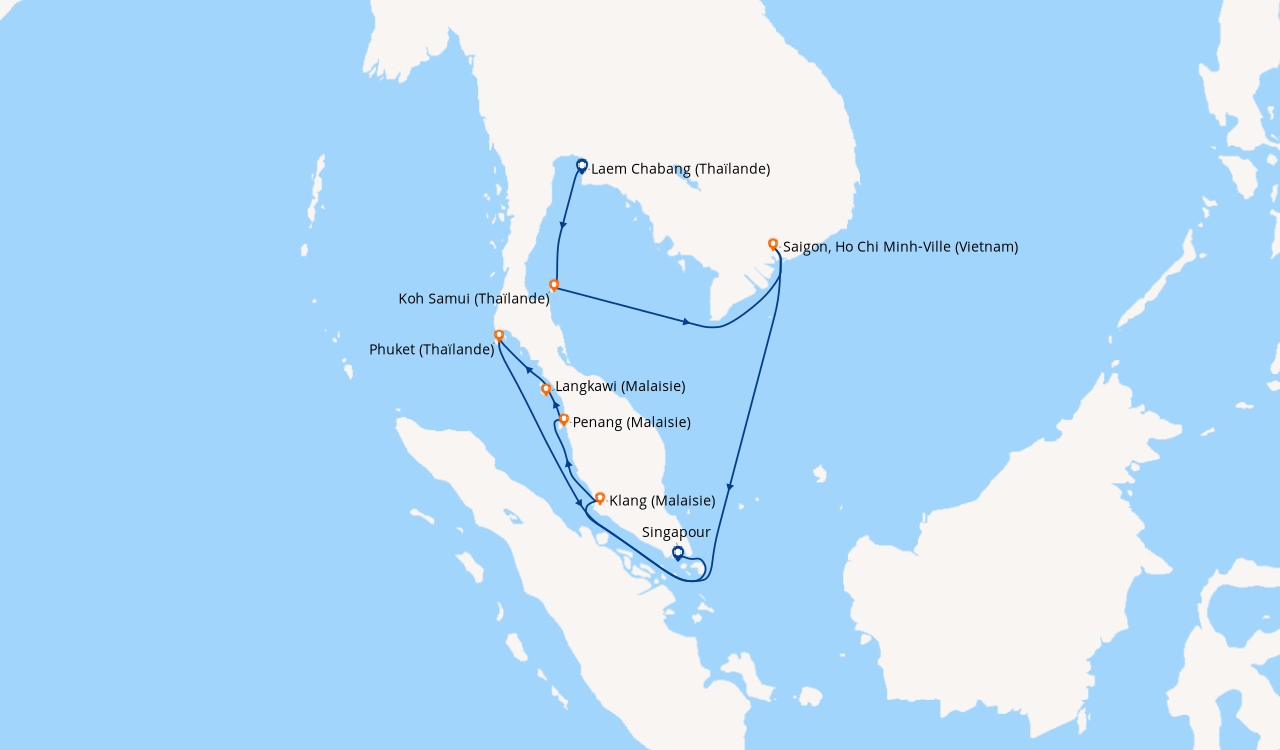 Pour les escales au Vietnam, en Chine et en Indonésie, un visa de transit, dont s'occupent en général les compagnies de croisière, est obligatoire et sera facturé dans le cadre de vos dépenses à bord.