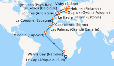 j'ai beaucoup aimé le mélange des nationalités (français, anglais, allemand, danois..) les gens prennent le temps de se parler au restaurant ou au bar jusqu'à tard le soir, on se sent vraiment en vacances ! les escales étaient à la hauteur de mes attentes, jamais de retards pour arriver à quai, la ville de Ivergordon en écosse très acceuillante avec un temps magnique.. j'avis peur qu'en 13 jours au total je m'ennuie durant les intervalles d'un port à l'autre mais pas du tout, sauf peut être le dernier jour. Dommage que les escales ne durent pas très longtemps, le bateau s'en va dès 14h, ce qui laisse la matinée pour explorer le port et les alentours mais pas + ... sauf à Liége on nous sommes partis à 19h mais c'est u une ville moins riche que Glasgow ou Belfast !