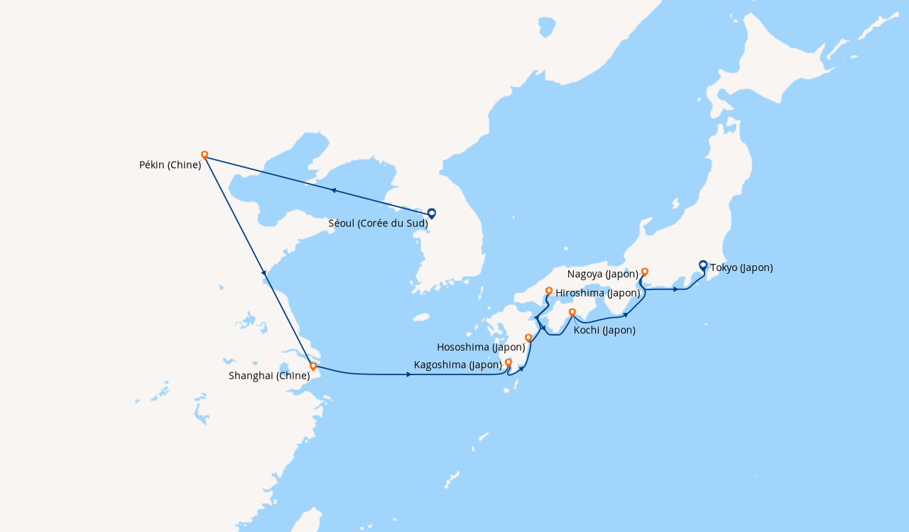 Une taxe locale japonaise (env. 1 000 ¥/passager) peut être appliquée pour les croisières faisant escale au Japon. Elle peut être facturée avant départ ou prélevée à bord selon la compagnie.