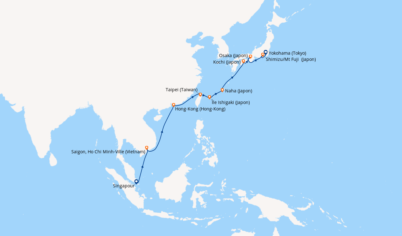 Une taxe locale japonaise (env. 1 000 ¥/passager) peut être appliquée pour les croisières faisant escale au Japon. Elle peut être facturée avant départ ou prélevée à bord selon la compagnie.