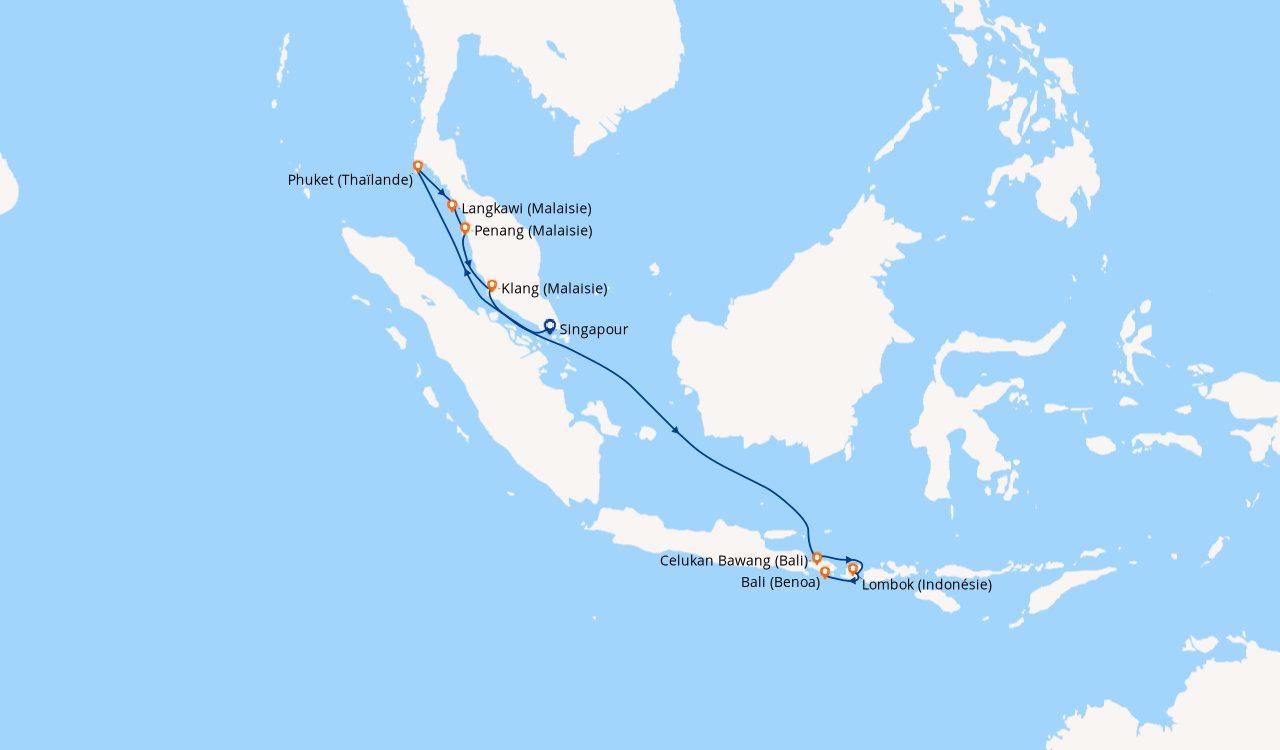 Pour les escales au Vietnam, en Chine et en Indonésie, un visa de transit, dont s'occupent en général les compagnies de croisière, est obligatoire et sera facturé dans le cadre de vos dépenses à bord.