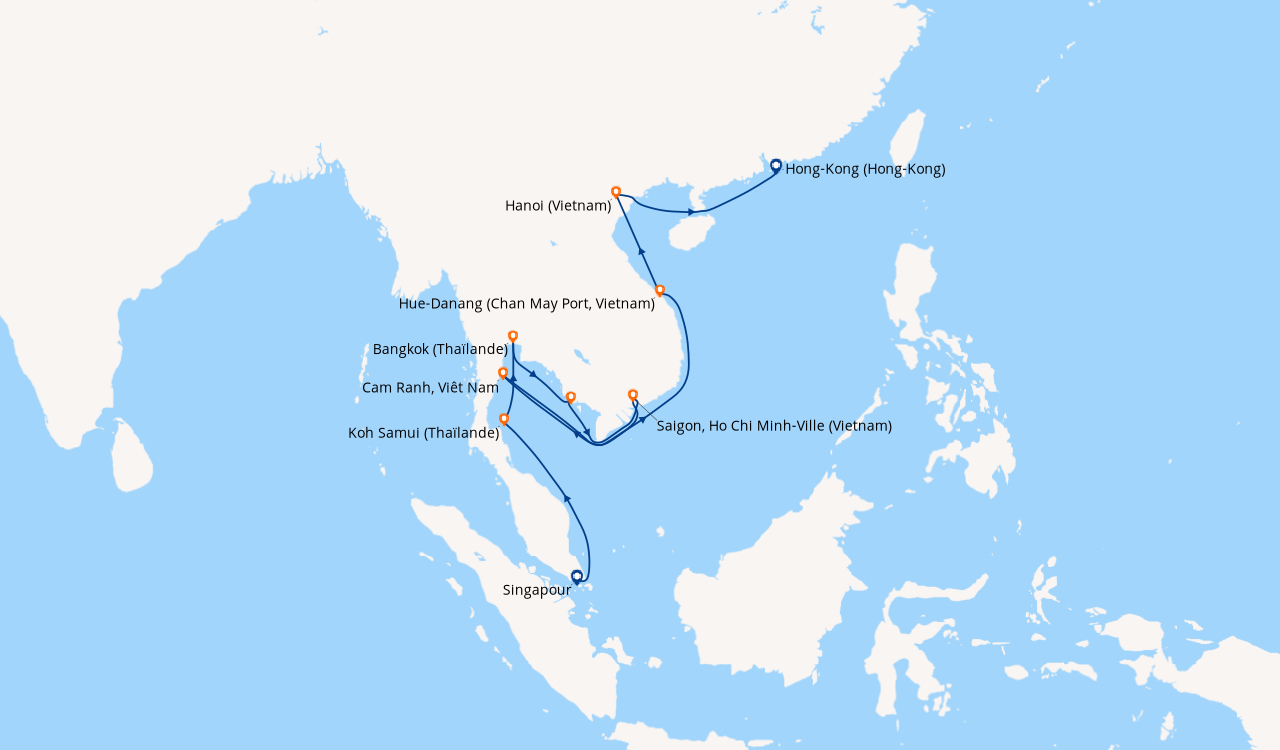 Pour les escales au Vietnam, en Chine et en Indonésie, un visa de transit, dont s'occupent en général les compagnies de croisière, est obligatoire et sera facturé dans le cadre de vos dépenses à bord.