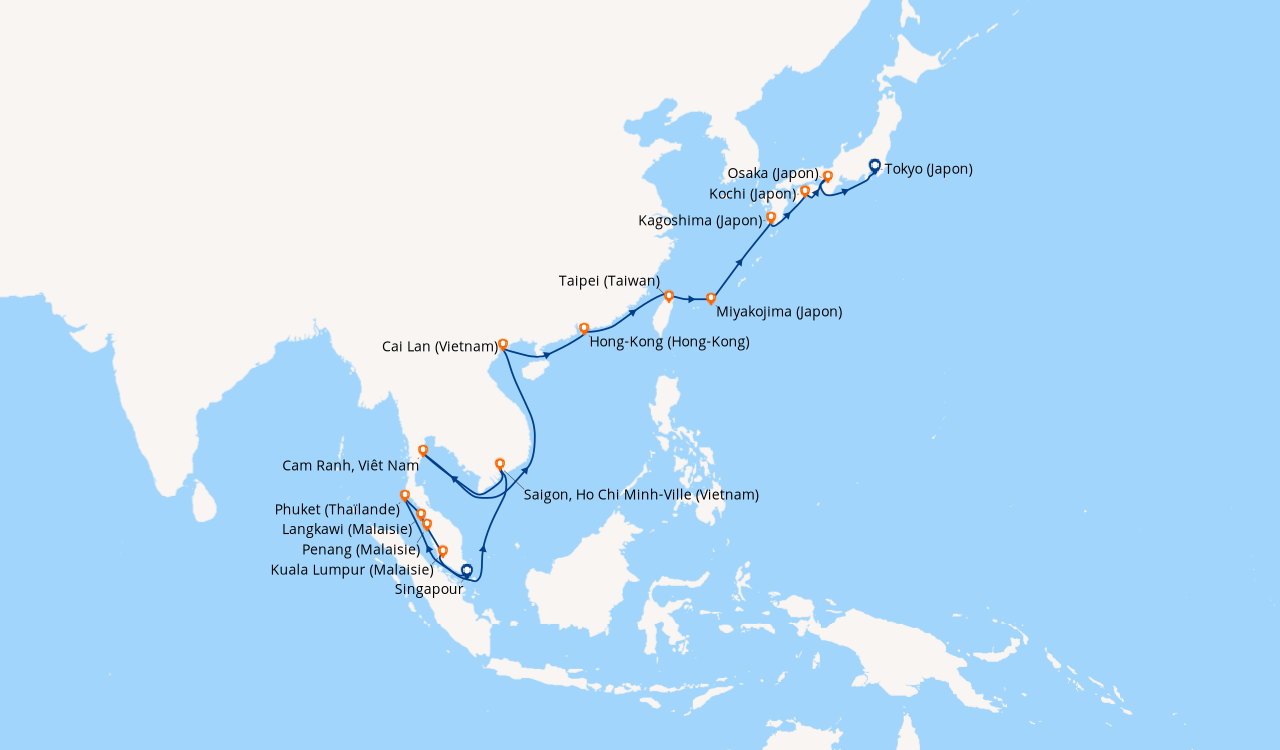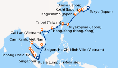 Pour les escales au Vietnam, en Chine et en Indonésie, un visa de transit, dont s'occupent en général les compagnies de croisière, est obligatoire et sera facturé dans le cadre de vos dépenses à bord.