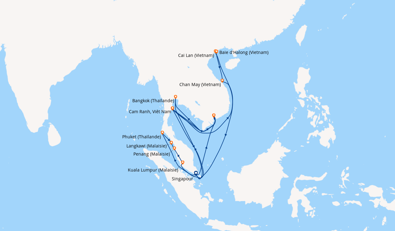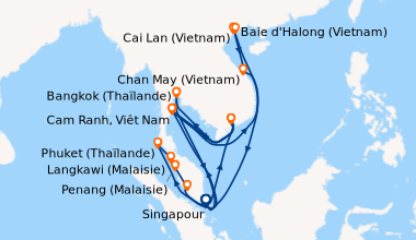 Pour les escales au Vietnam, en Chine et en Indonésie, un visa de transit, dont s'occupent en général les compagnies de croisière, est obligatoire et sera facturé dans le cadre de vos dépenses à bord.