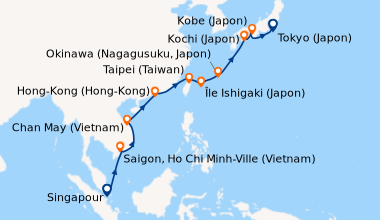 Pour les escales au Vietnam, en Chine et en Indonésie, un visa de transit, dont s'occupent en général les compagnies de croisière, est obligatoire et sera facturé dans le cadre de vos dépenses à bord.