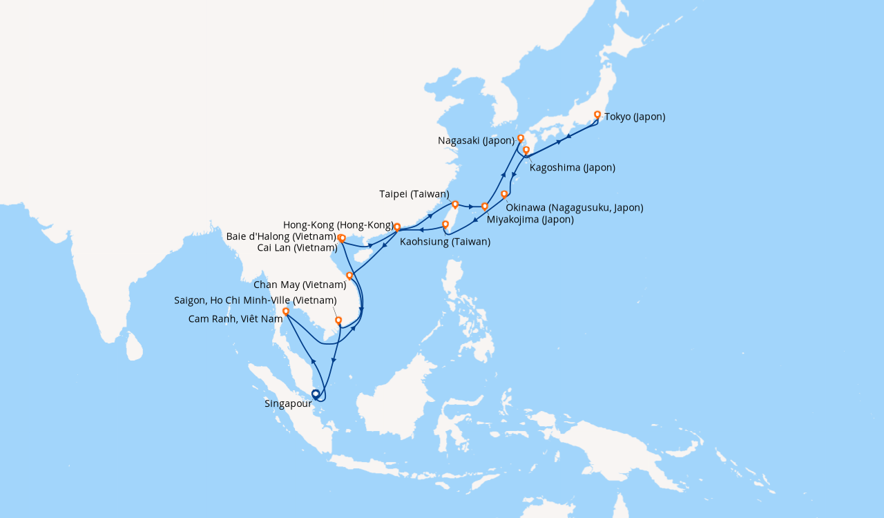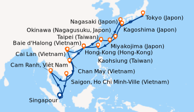 Pour les escales au Vietnam, en Chine et en Indonésie, un visa de transit, dont s'occupent en général les compagnies de croisière, est obligatoire et sera facturé dans le cadre de vos dépenses à bord.