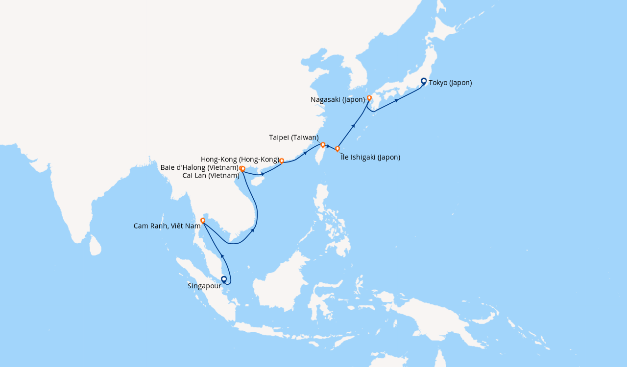 Pour les escales au Vietnam, en Chine et en Indonésie, un visa de transit, dont s'occupent en général les compagnies de croisière, est obligatoire et sera facturé dans le cadre de vos dépenses à bord.