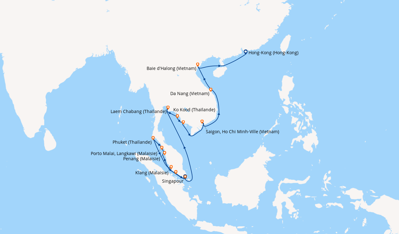 Pour les escales au Vietnam, en Chine et en Indonésie, un visa de transit, dont s'occupent en général les compagnies de croisière, est obligatoire et sera facturé dans le cadre de vos dépenses à bord.