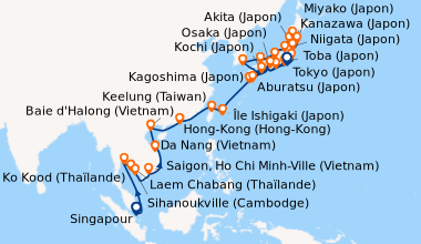 Pour les escales au Vietnam, en Chine et en Indonésie, un visa de transit, dont s'occupent en général les compagnies de croisière, est obligatoire et sera facturé dans le cadre de vos dépenses à bord.