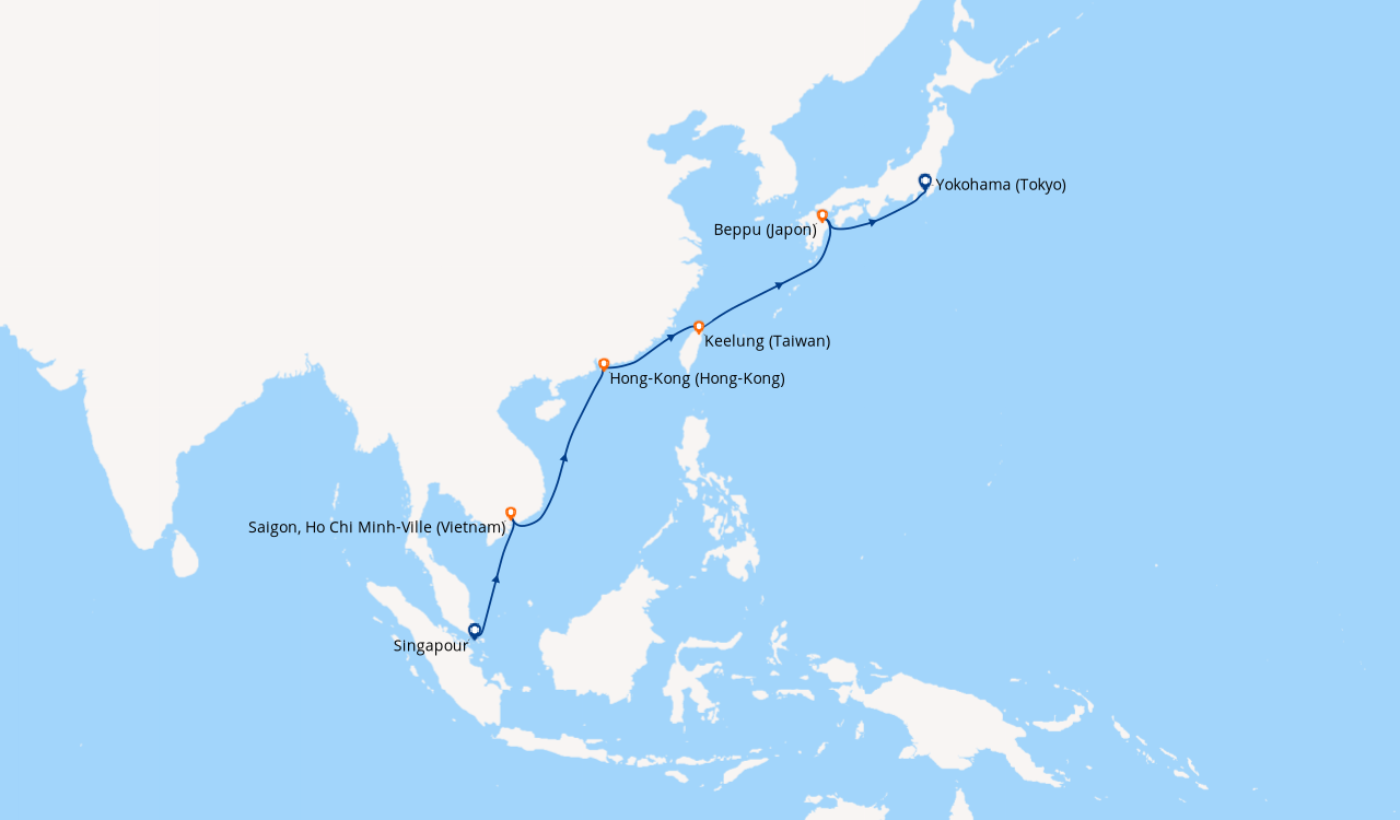 Une taxe locale japonaise (env. 1 000 ¥/passager) peut être appliquée pour les croisières faisant escale au Japon. Elle peut être facturée avant départ ou prélevée à bord selon la compagnie.