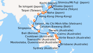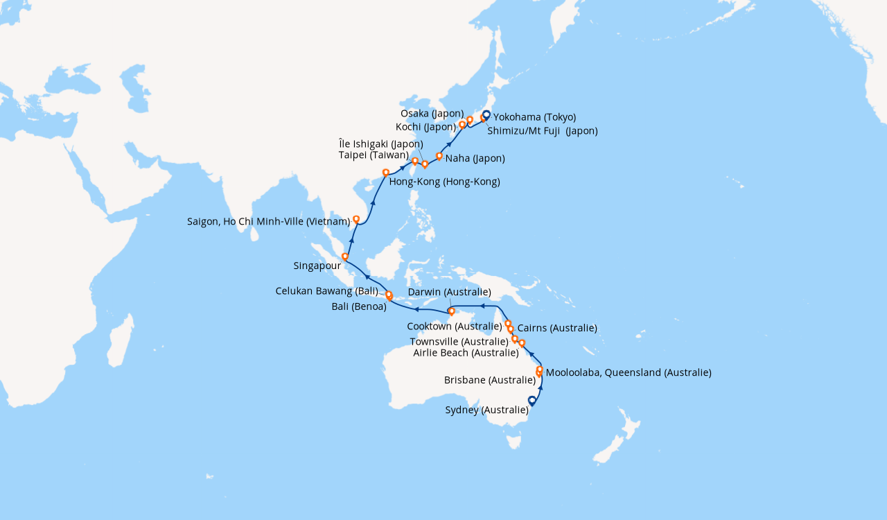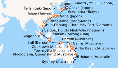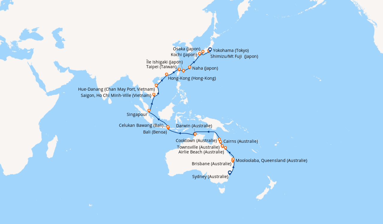Pour les escales au Vietnam, en Chine et en Indonésie, un visa de transit, dont s'occupent en général les compagnies de croisière, est obligatoire et sera facturé dans le cadre de vos dépenses à bord.