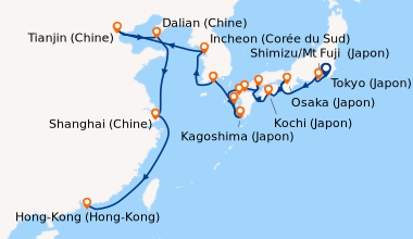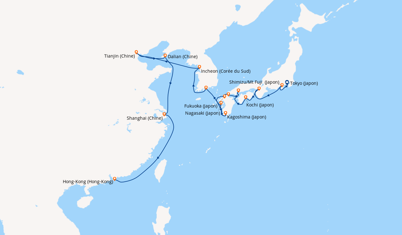 Une taxe locale japonaise (env. 1 000 ¥/passager) peut être appliquée pour les croisières faisant escale au Japon. Elle peut être facturée avant départ ou prélevée à bord selon la compagnie.