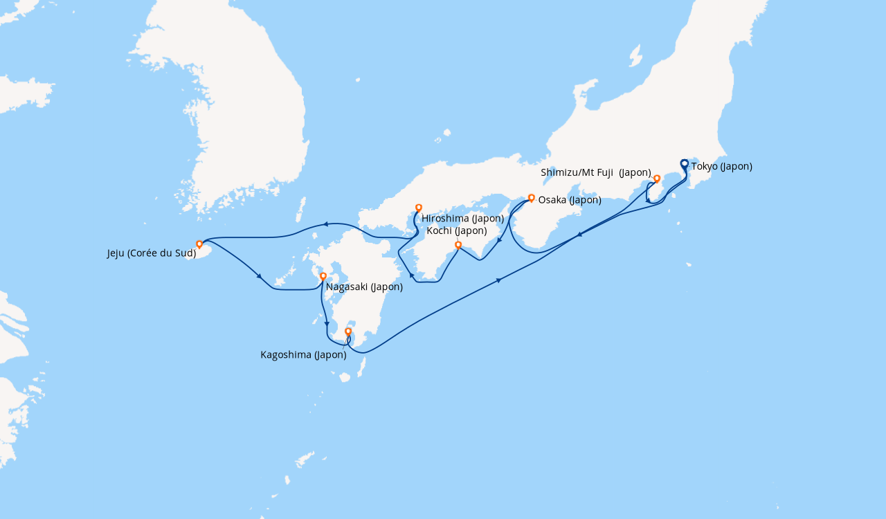 Une taxe locale japonaise (env. 1 000 ¥/passager) peut être appliquée pour les croisières faisant escale au Japon. Elle peut être facturée avant départ ou prélevée à bord selon la compagnie.