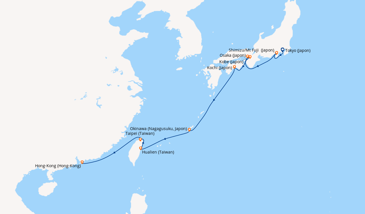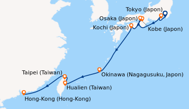 Une taxe locale japonaise (env. 1 000 ¥/passager) peut être appliquée pour les croisières faisant escale au Japon. Elle peut être facturée avant départ ou prélevée à bord selon la compagnie.