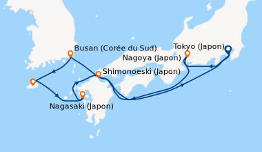 Une taxe locale japonaise (env. 1 000 ¥/passager) peut être appliquée pour les croisières faisant escale au Japon. Elle peut être facturée avant départ ou prélevée à bord selon la compagnie.