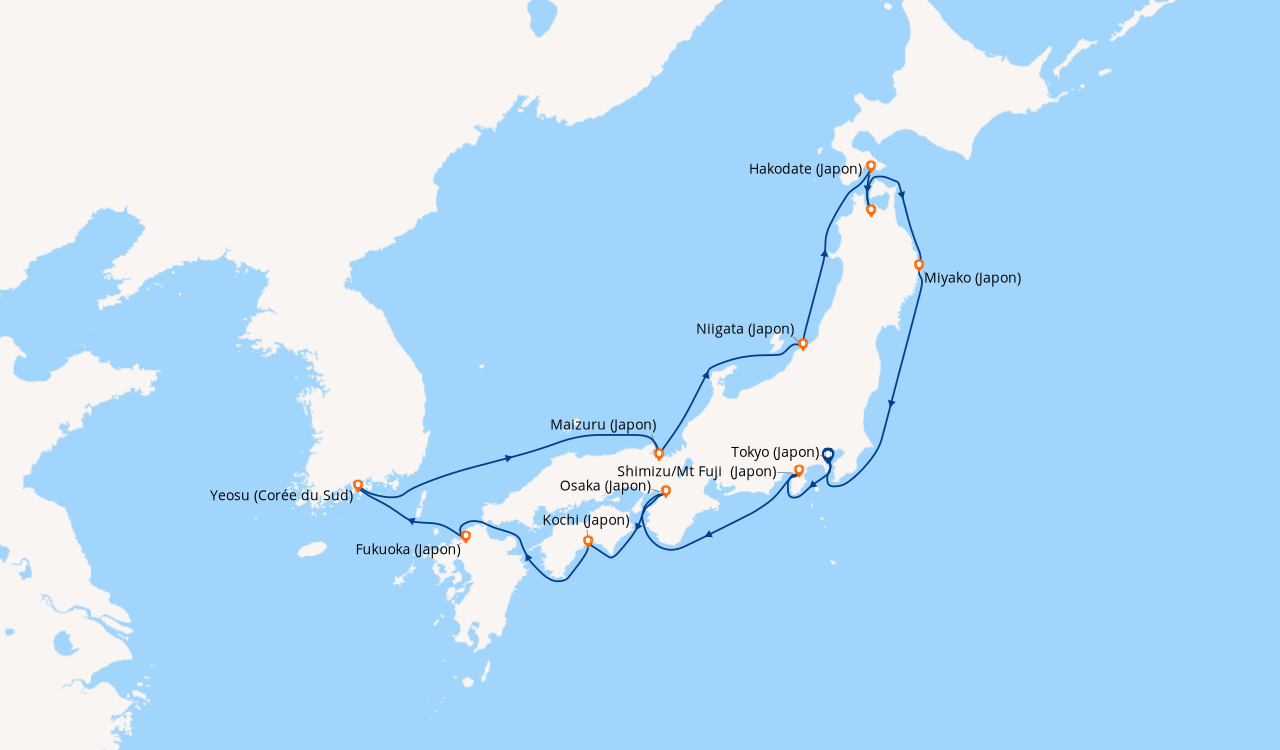 Une taxe locale japonaise (env. 1 000 ¥/passager) peut être appliquée pour les croisières faisant escale au Japon. Elle peut être facturée avant départ ou prélevée à bord selon la compagnie.