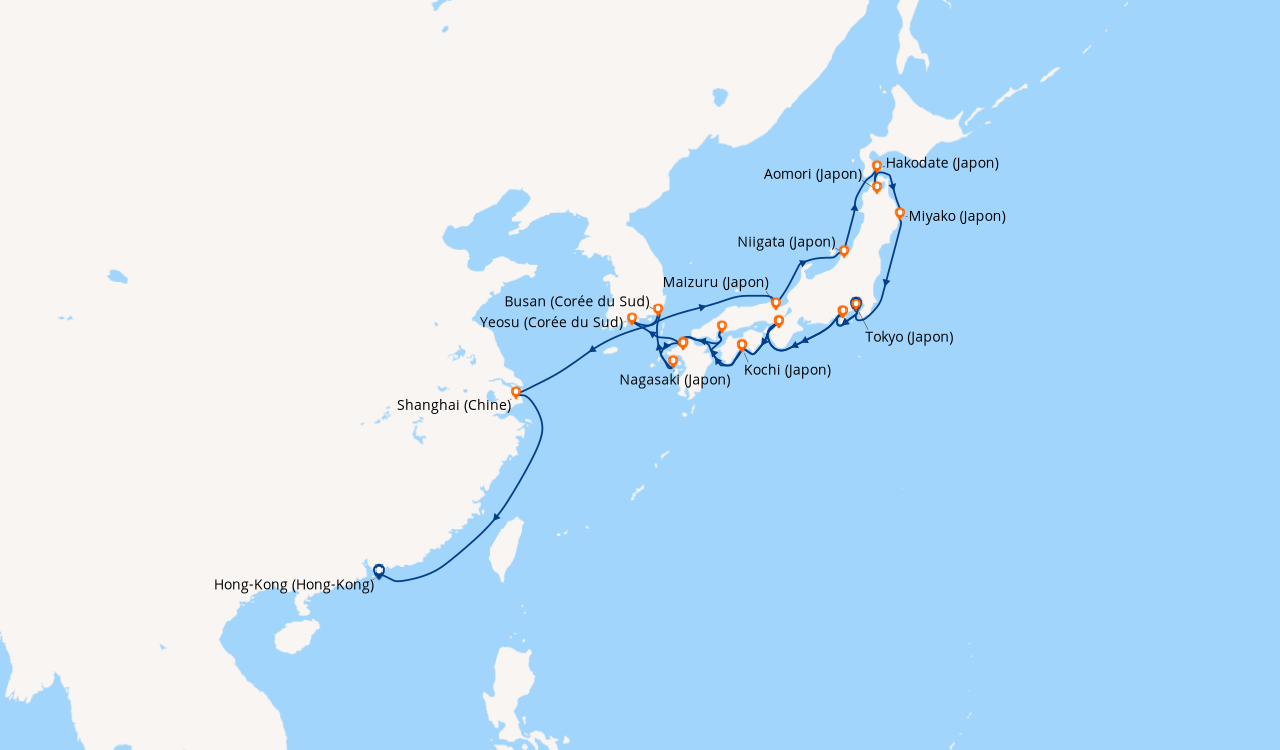 Une taxe locale japonaise (env. 1 000 ¥/passager) peut être appliquée pour les croisières faisant escale au Japon. Elle peut être facturée avant départ ou prélevée à bord selon la compagnie.