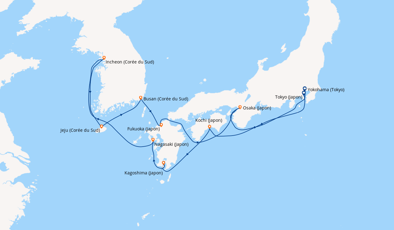 Une taxe locale japonaise (env. 1 000 ¥/passager) peut être appliquée pour les croisières faisant escale au Japon. Elle peut être facturée avant départ ou prélevée à bord selon la compagnie.