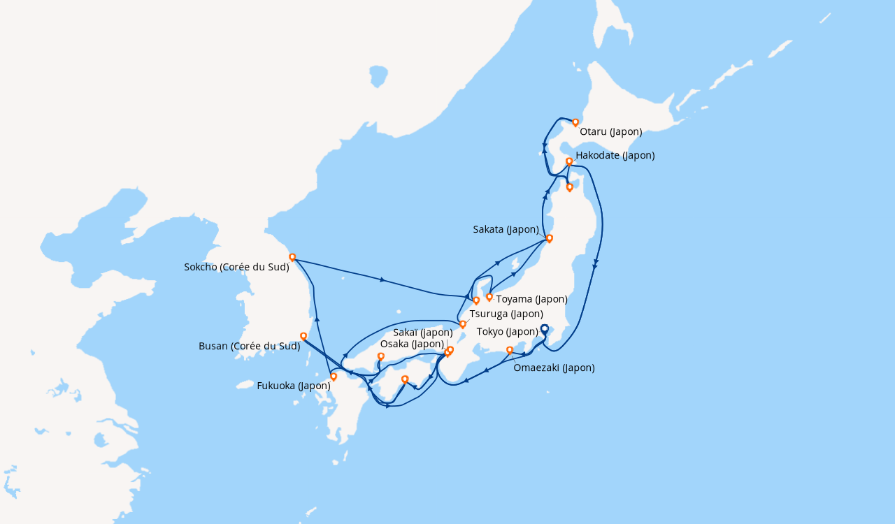 Une taxe locale japonaise (env. 1 000 ¥/passager) peut être appliquée pour les croisières faisant escale au Japon. Elle peut être facturée avant départ ou prélevée à bord selon la compagnie.