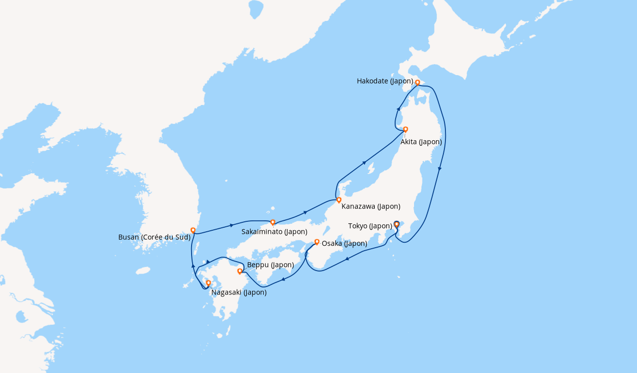 Une taxe locale japonaise (env. 1 000 ¥/passager) peut être appliquée pour les croisières faisant escale au Japon. Elle peut être facturée avant départ ou prélevée à bord selon la compagnie.
