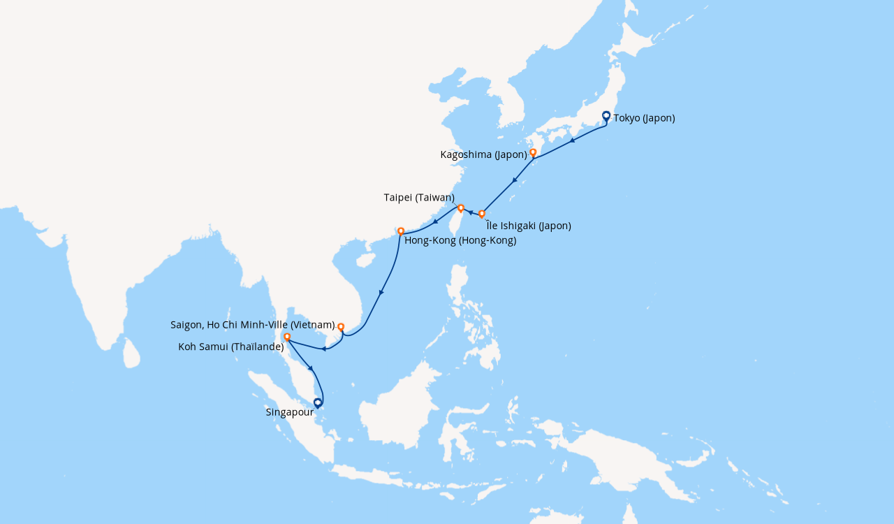 Une taxe locale japonaise (env. 1 000 ¥/passager) peut être appliquée pour les croisières faisant escale au Japon. Elle peut être facturée avant départ ou prélevée à bord selon la compagnie.