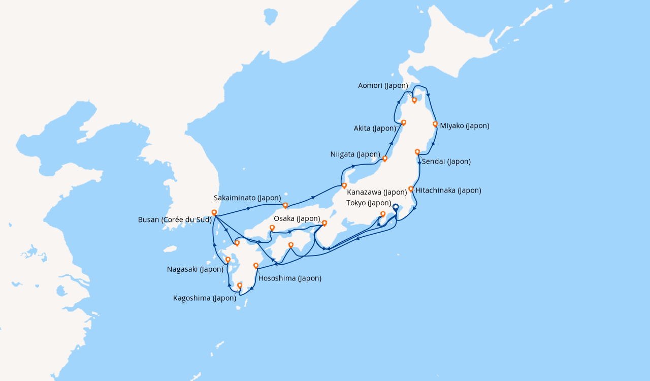 Une taxe locale japonaise (env. 1 000 ¥/passager) peut être appliquée pour les croisières faisant escale au Japon. Elle peut être facturée avant départ ou prélevée à bord selon la compagnie.