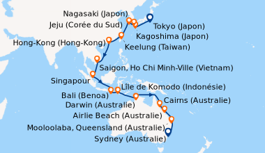 Pour les escales au Vietnam, en Chine et en Indonésie, un visa de transit, dont s'occupent en général les compagnies de croisière, est obligatoire et sera facturé dans le cadre de vos dépenses à bord.