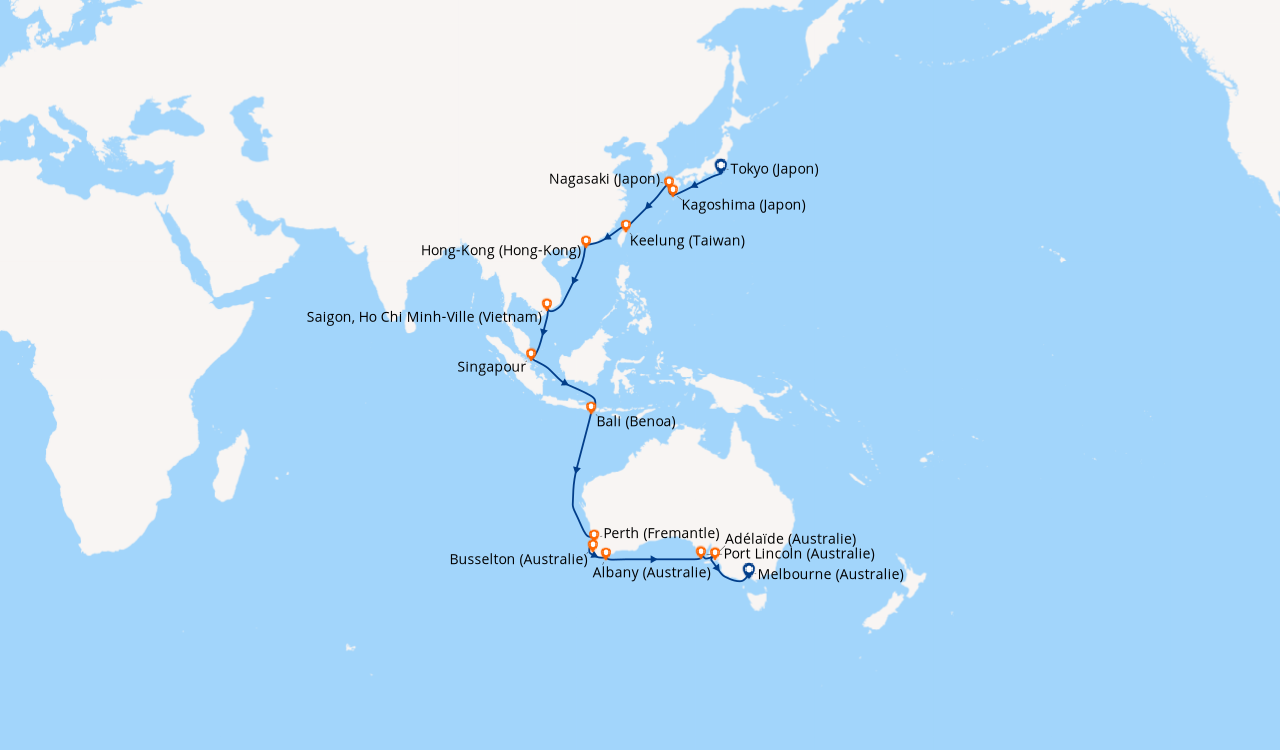 Une taxe locale japonaise (env. 1 000 ¥/passager) peut être appliquée pour les croisières faisant escale au Japon. Elle peut être facturée avant départ ou prélevée à bord selon la compagnie.